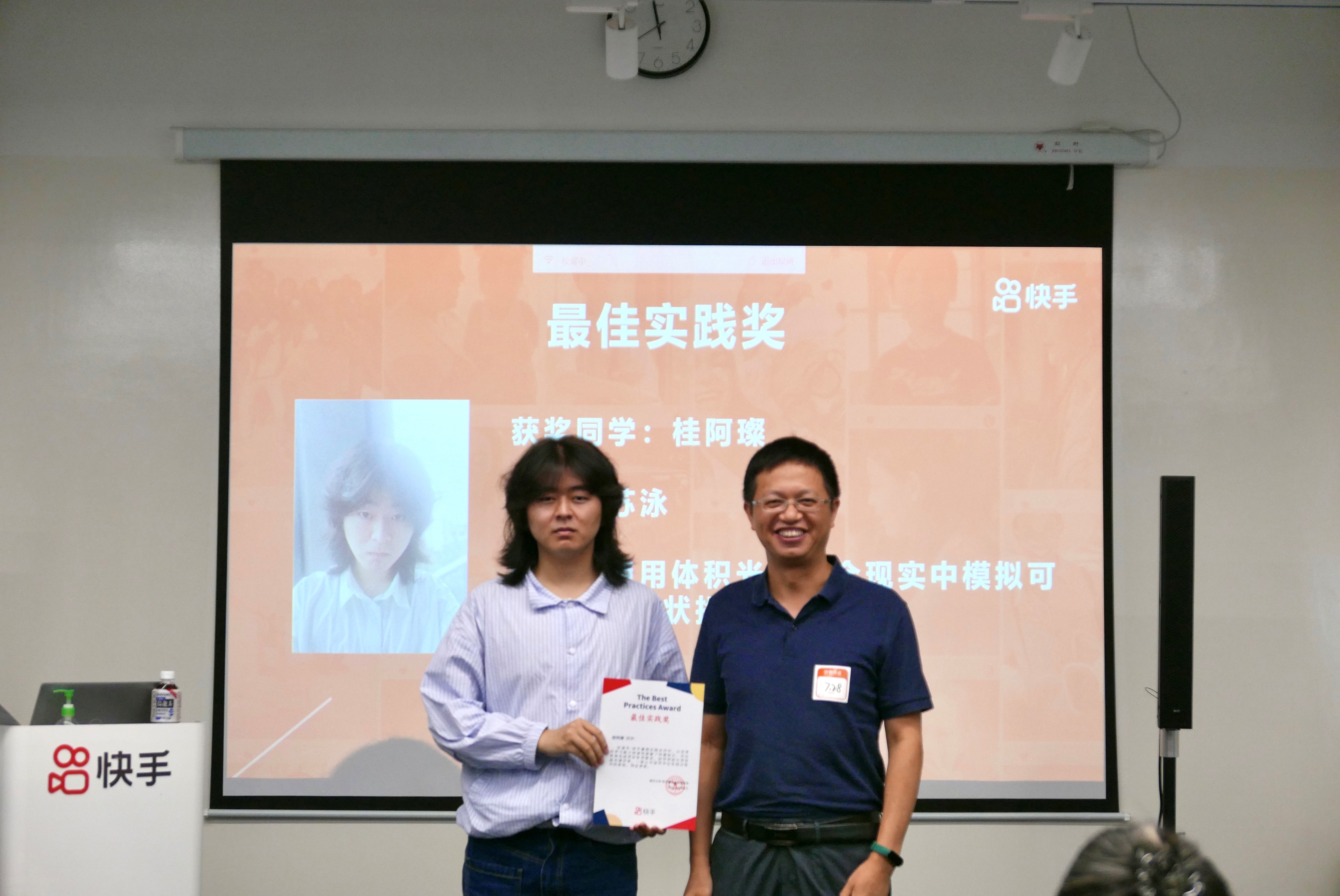 7月28日上午,暑期专业实践答辩在快手总部顺利进行,永利集团304am登录党委书记王斌老师、副院长张慧老师、快手Y-Tech五位导师以及校园关系组负责人付丹丹女士受邀作为评审嘉宾,共同见证同学们的实践成果。9名同学对自己的实践课题进行汇报且顺利通过答辩。答辩结束后,针对实践表现优异的同学,颁发了最佳实践奖和最佳创意奖。