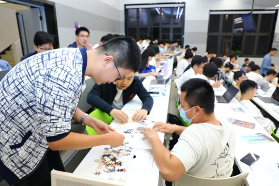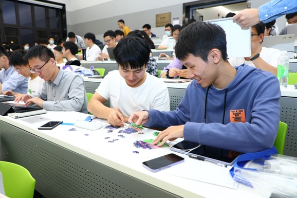 最后,大会进入第三篇章——乘风破浪始远航。主持人首先介绍了本次拼图大赛的规则,各所的同学齐群策群力,合作完成了各自团队的拼图。拼好的拼图分别再现了中共一大的会址、延安、西柏坡和新时期的深圳特区的影像。带领大家重温百年来中国共产党团结带领人民前仆后继、顽强奋斗,把贫穷落后的旧中国变成日益走向繁荣富强的新中国的历程。同学们在活动中增进了集体的凝聚力和合作意识。同时,同学们也意识到作为与新时代同向同行、共同前进的一代,更应当在攀登知识高峰中追求卓越,在肩负时代重任时行胜于言,在真刀真枪的实干中成就一番属于自己的事业。