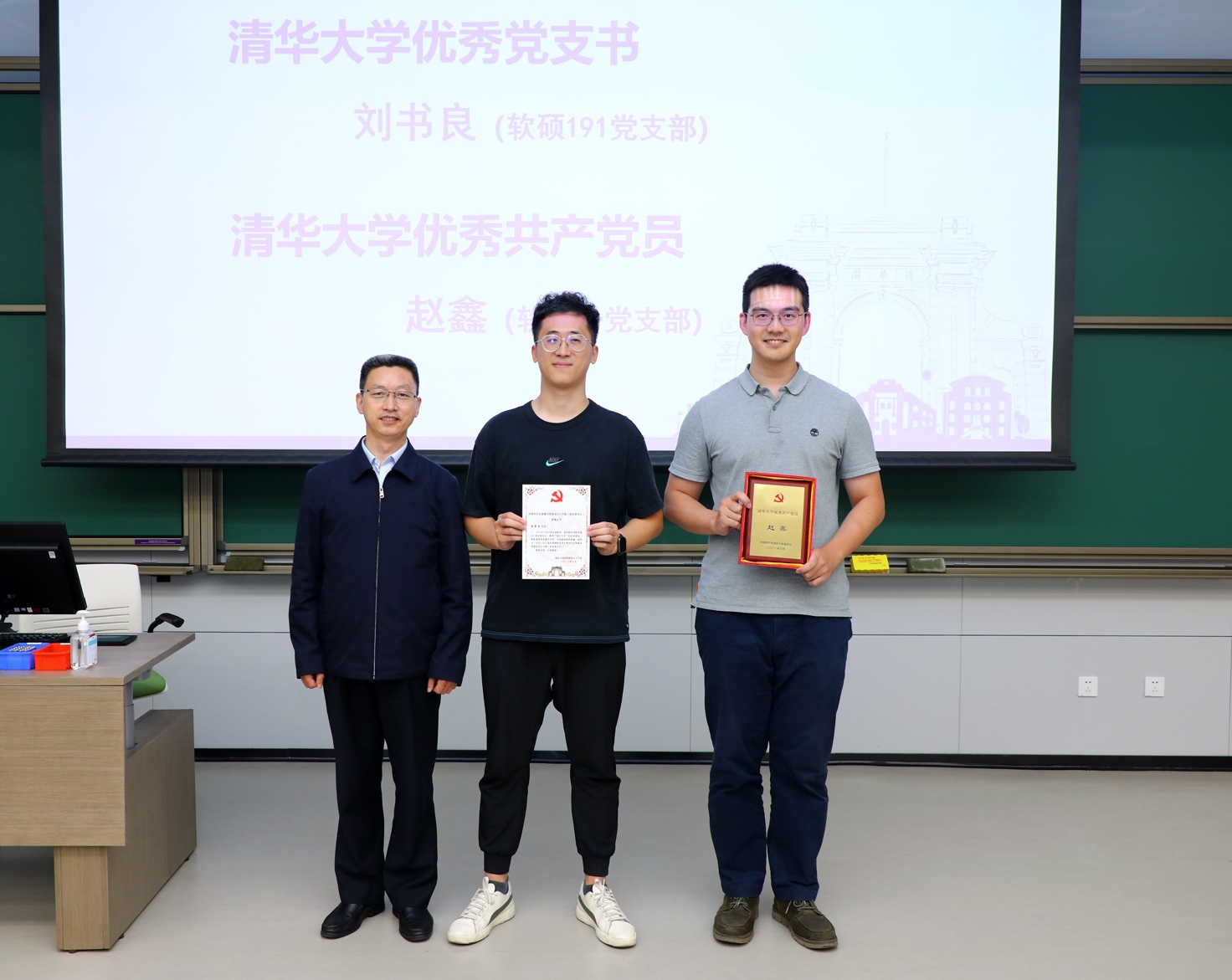 在个人荣誉展示与颁奖环节,王建民老师为获得永利集团304am登录优秀党支书称号的软硕191党支部书记刘书良与获得永利集团304am登录优秀共产党员称号的软博一党支部党员赵鑫同学颁奖。刘书良同学从三个“全”—“全员”、“全过程”、“全方位”的角度,总结了支部如何充分利用学校与院系资源,根据就业引导等支持体系,将软硕191党支部建设为一个有凝聚力、爱学习、爱奉献的优秀集体。