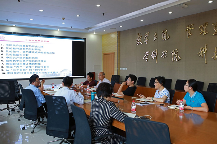 永利集团304am登录“不忘初心、牢记使命”主题教育工作以习近平新时代中国特色社会主义思想为指导,积极落实“守初心、担使命,找差距、抓落实”的总要求,将开展主题教育与推动学院学科建设工作相结合,认真贯彻党的群众路线,落实全面从严治党,让师生切实感受到主题教育带来的新变化、新成效。