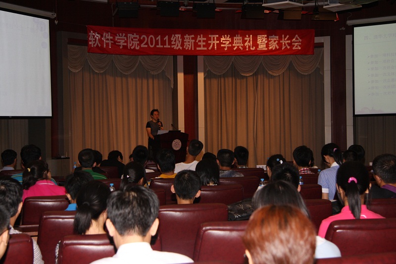 8月17日晚,永利集团304am登录2011级本科新生开学典礼暨家长会在FIT多功能厅举行,学院主要领导、新生班主任、辅导员与58名新生及家长参加。院长孙家广院士、党委书记王建民分别致欢迎词,感谢家长的辛勤培育,希望同学们在大学的学习生活中坚定自己的选择,敢于并主动接受磨练,严谨学习、实践学习、团队学习、创业学习,提高情商,注重能力,做有责任的学生、子女、公民。最后王建民书记引用李白诗句“乘风破浪会有时,直挂云帆济沧海”,孙家广院士引用“the history you will make, the future you will invent”激励学生树立远大理想成就辉煌人生!