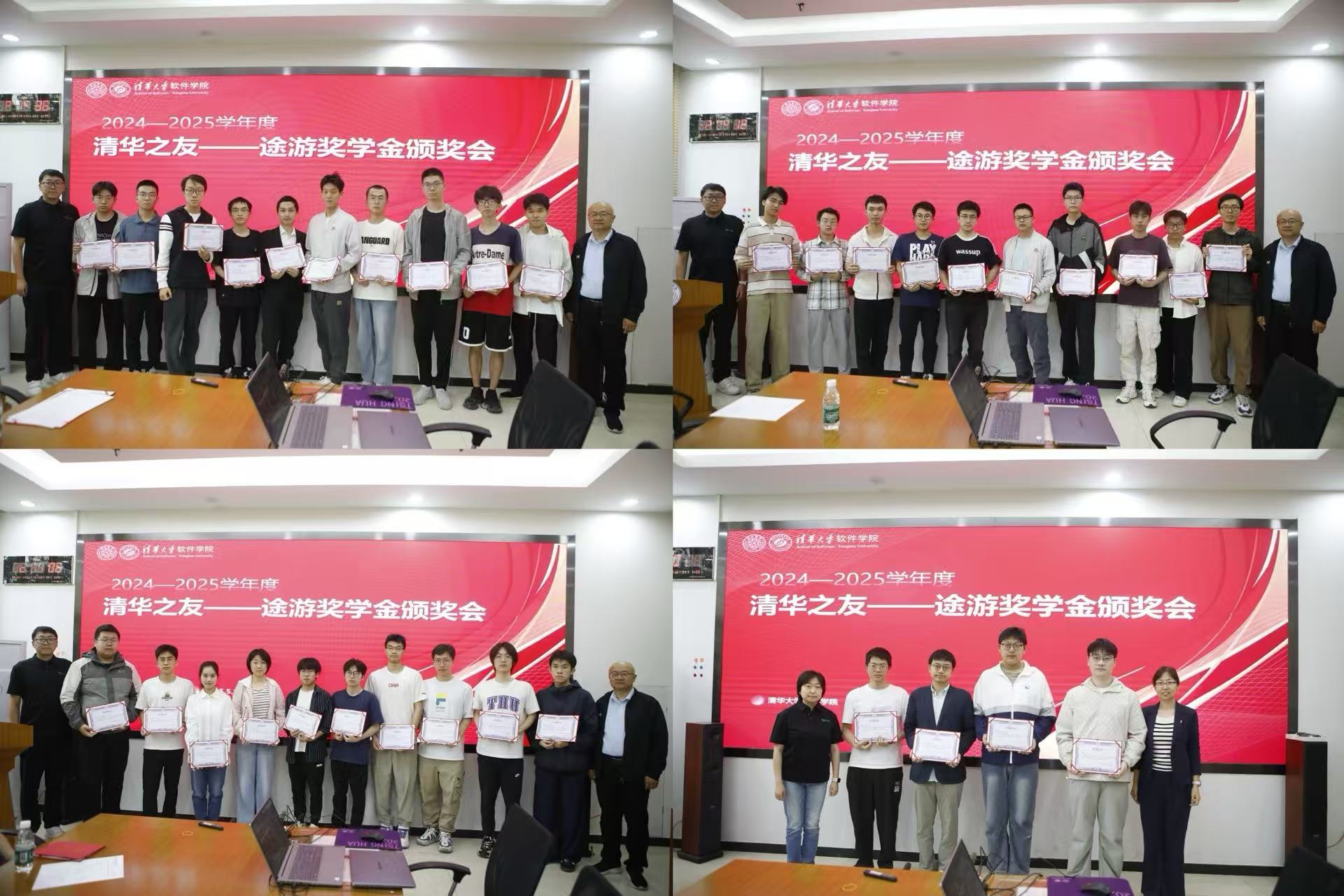 颁奖阶段,王朝坤和安晓宇,张荷花和王琦楠分别为本科生与研究生获奖学生颁发获奖证书。张小健和邹妍代表学院向途游游戏递送了本科生与研究生获奖同学的感谢信。